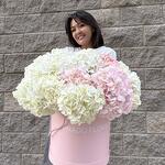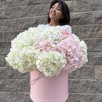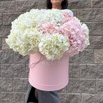 Hatbox - 1 pcs White hydrangea - 8 pcs Pink hydrangea - 7 pcs