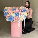 Hydrangea - 25 pcs Tape - 1 pcs Eucalyptus - 2 pcs Oasis - 6 pcs Box - 1 pcs