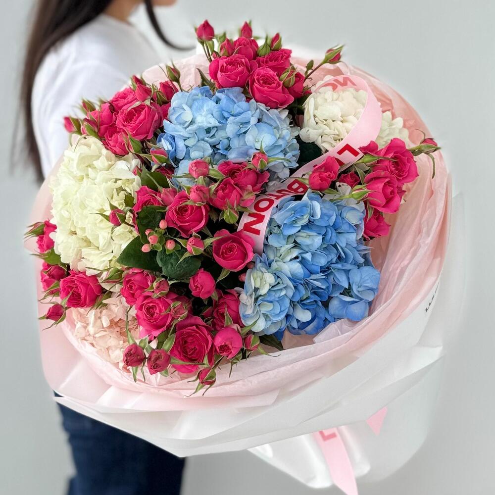 hydrangeas - 5 pcs bush roses - 7 pcs
