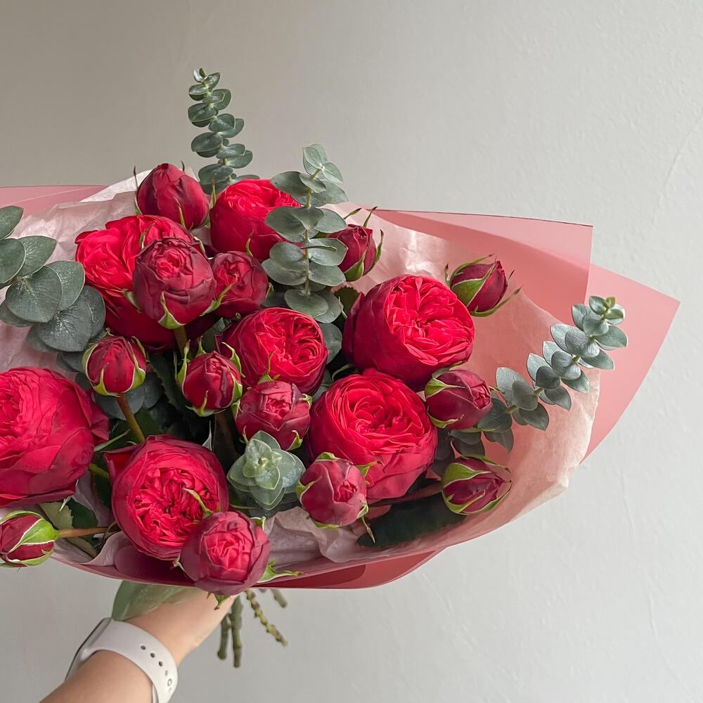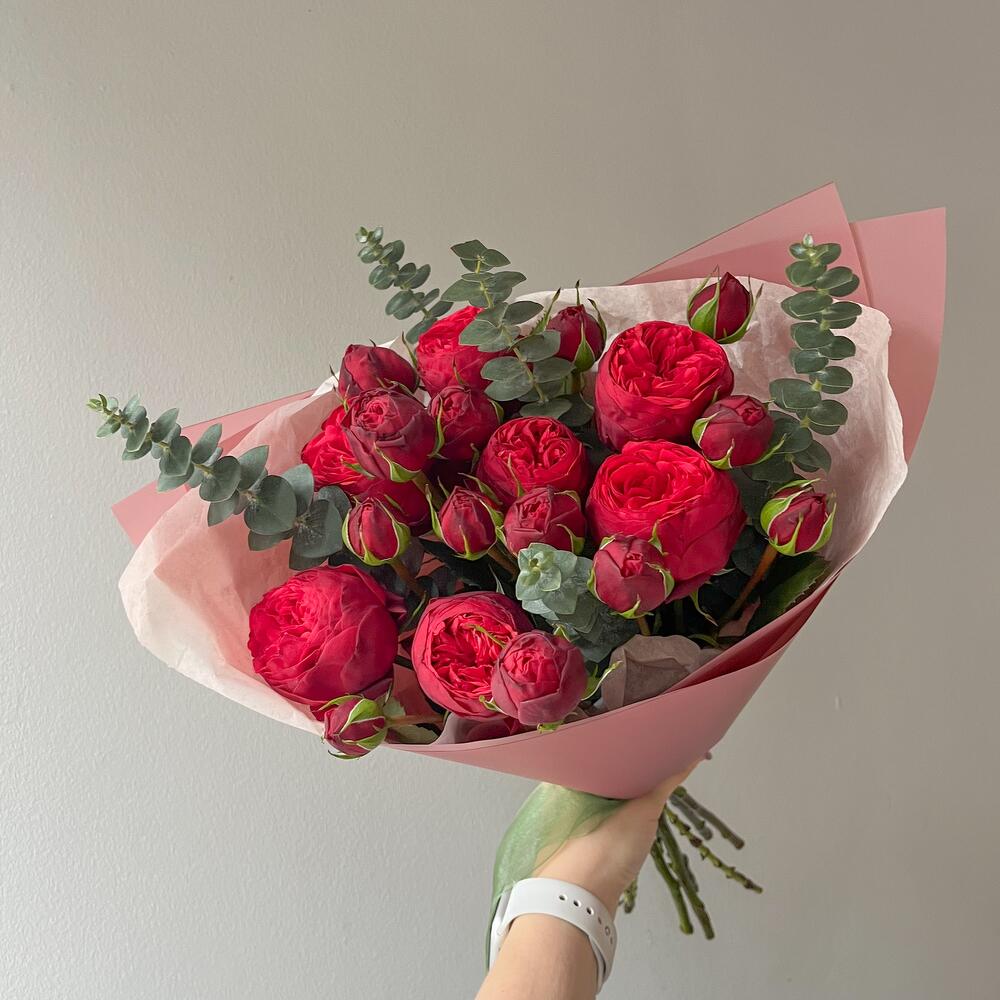 Eucalyptus - 1 pcs Peony rose red piano - 7 pcs