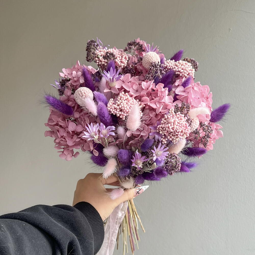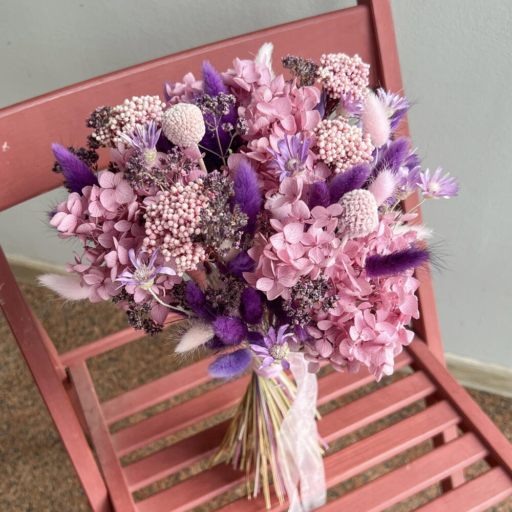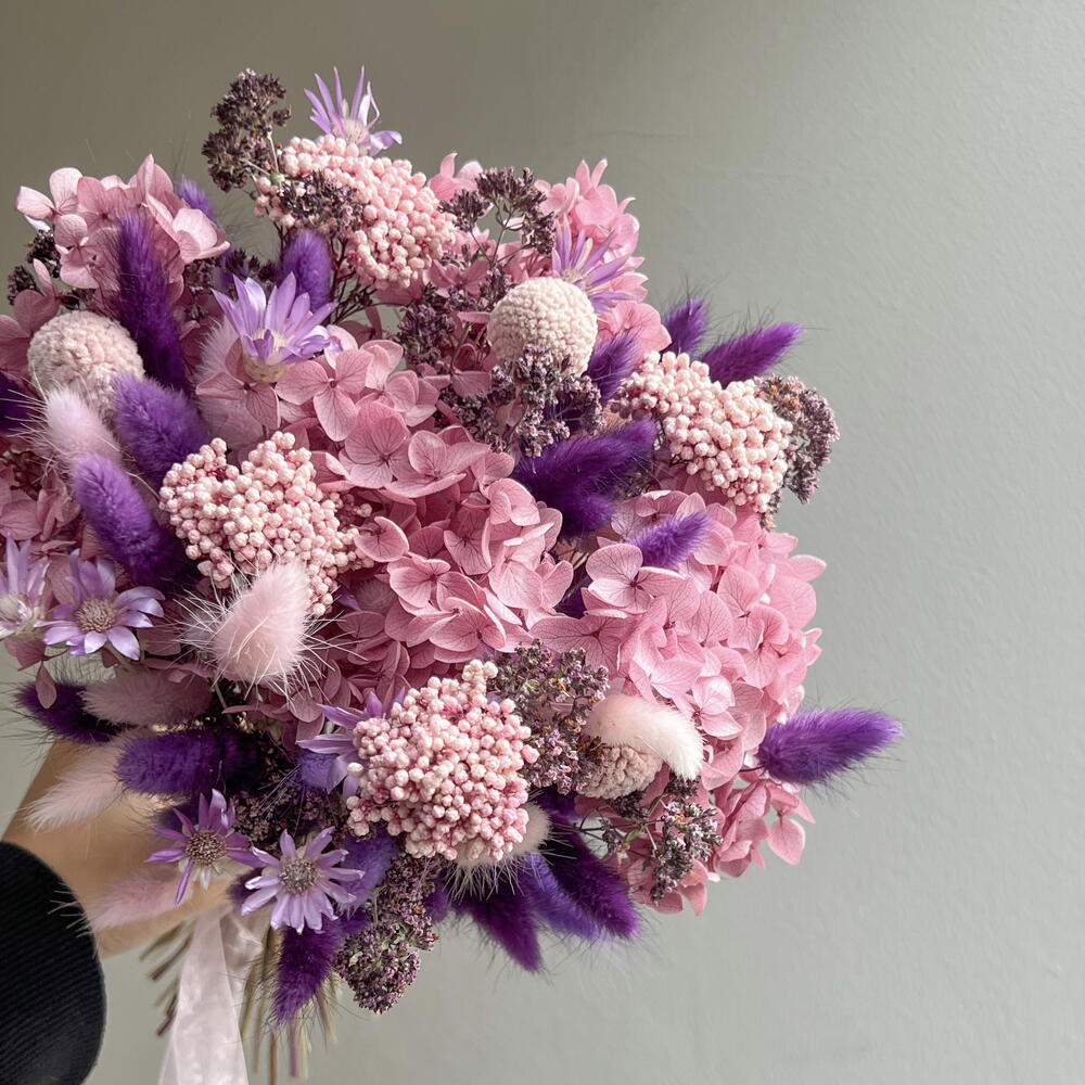 Hydrangea - 4 pcs Kraspedia - 3 pcs Ozothamnus - 4 pcs Lagurus - 72 pcs Oregano - 16 pcs xeranthemum - 1 pcs