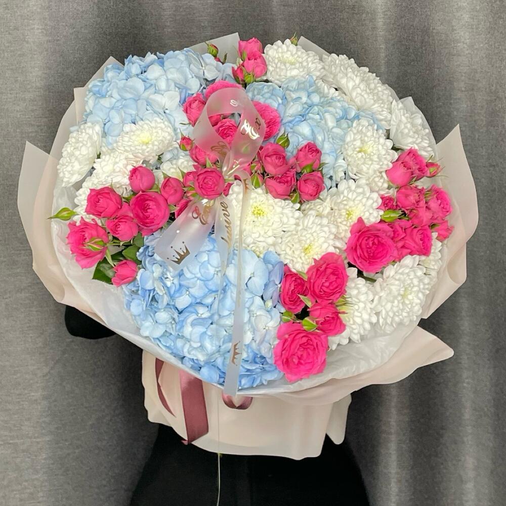 Hydrangea - 3 pcs Bush rose - 8 pcs chrysanthemums bush - 5 pcs