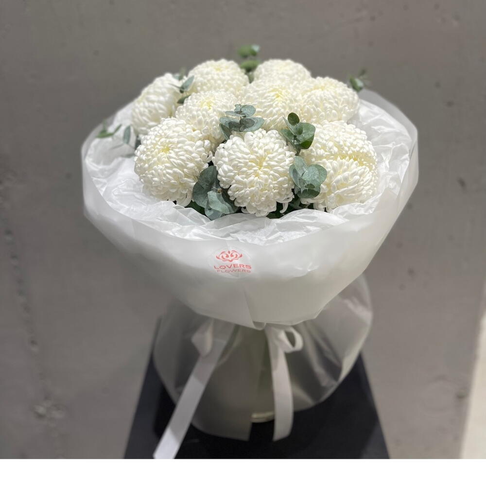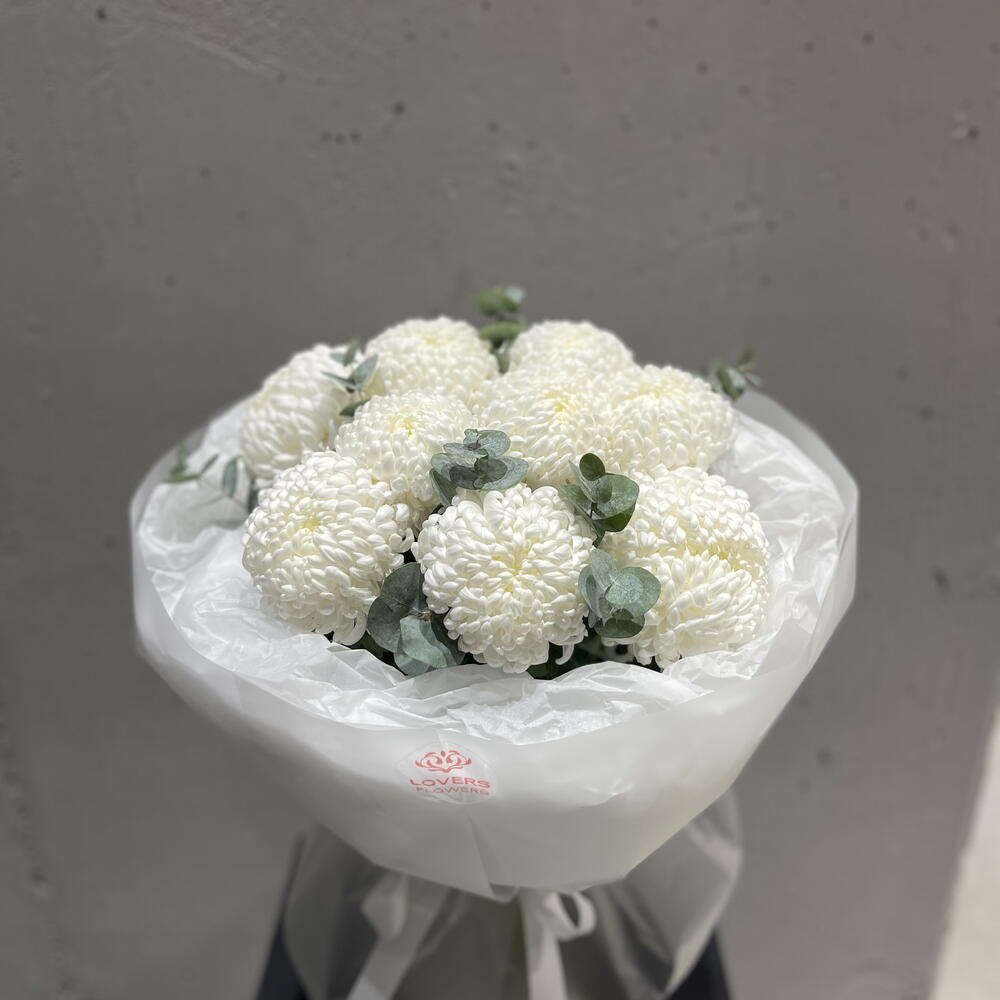Chrysanthemum one - headed - 9 pcs Eucalyptus cinerea - 4 pcs