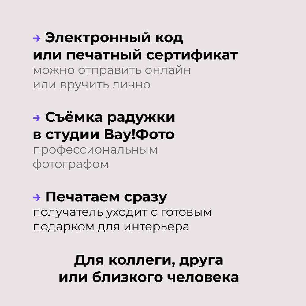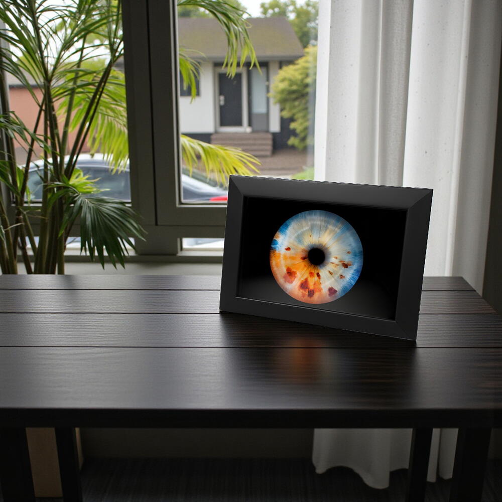 Создаем искусство из взгляда! Индивидуальное арт-фото радужки — это необычный подарок + уникальные обои для телефона. Каждая радужка — как отпечаток пальца, только красивее. Мы бережно снимем радужку в макро, чтобы подчеркнуть все оттенки цвета, прожилки и фактуру. Уберем блики от вспышки и добавим арт-эффект на выбор. Готовый результат — фото в рамке 10×15. Можно поставить на рабочий стол или полку. Оформляйте электронный сертификат — и мы превратим радужку в артобъект.
