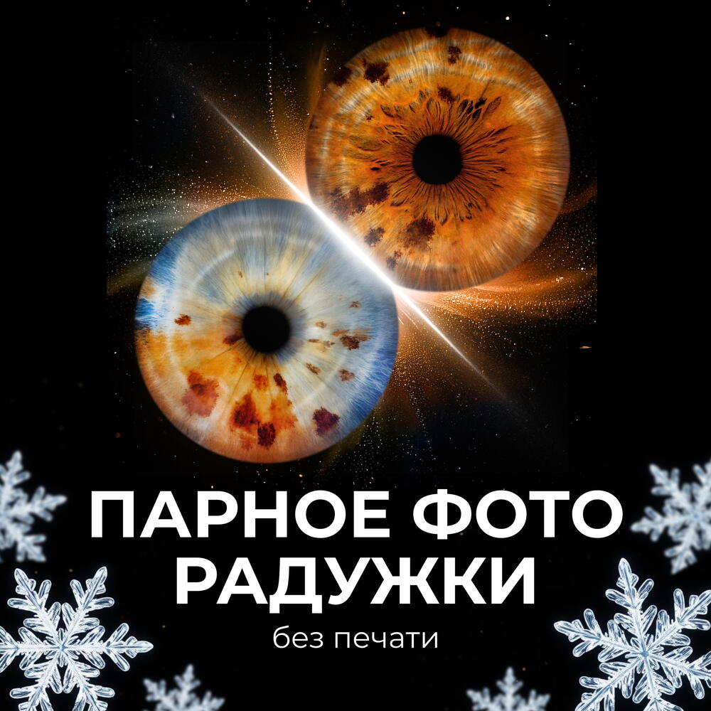 We create art from a glance! Paired iris art photo — an unusual gift + unique phone wallpaper. Each iris is like a fingerprint, only more beautiful. We'll carefully photograph the iris in macro to highlight every shade of color, veins and texture. We'll remove flash glare and add an art effect of your choice. Order an electronic certificate — and we'll turn the iris into an art object.
