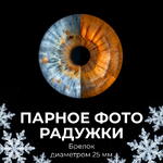Создаем искусство из взгляда! Парное арт-фото радужки — это необычный подарок + уникальные обои для телефона. Каждая радужка — как отпечаток пальца, только красивее. Мы бережно снимем радужку в макро, чтобы подчеркнуть все оттенки цвета, прожилки и фактуру. Уберем блики от вспышки и добавим арт-эффект на выбор. Готовый результат — брелок на выбор 25мм. Можно повешать на сумку или ключи. Оформляйте электронный сертификат — и мы превратим радужку в артобъект.