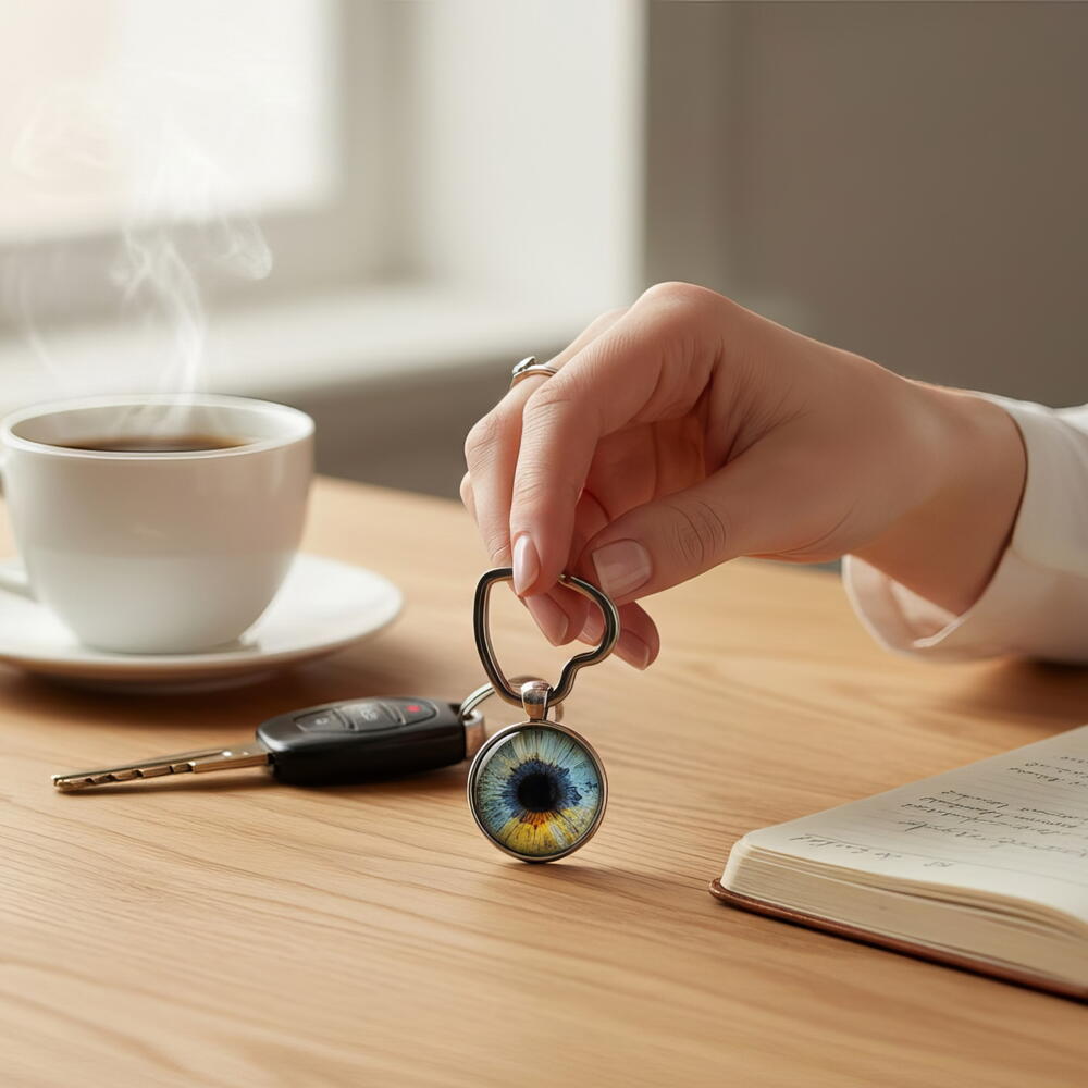 Matching iris photo and keychain