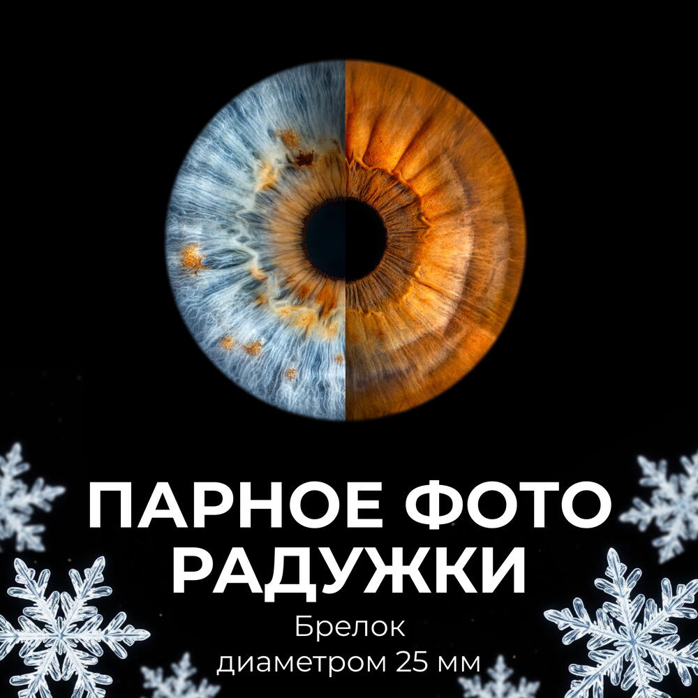 Создаем искусство из взгляда! Парное арт-фото радужки — это необычный подарок + уникальные обои для телефона. Каждая радужка — как отпечаток пальца, только красивее. Мы бережно снимем радужку в макро, чтобы подчеркнуть все оттенки цвета, прожилки и фактуру. Уберем блики от вспышки и добавим арт-эффект на выбор. Готовый результат — брелок на выбор 25мм. Можно повешать на сумку или ключи. Оформляйте электронный сертификат — и мы превратим радужку в артобъект.