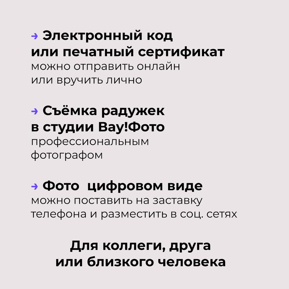 Создаем искусство из взгляда! Арт-фото радужки — это необычный подарок + уникальные обои для телефона. Каждая радужка — как отпечаток пальца, только красивее. Мы бережно снимем радужку в макро, чтобы подчеркнуть все оттенки цвета, прожилки и фактуру. Уберем блики от вспышки и добавим арт-эффект на выбор. Оформляйте электронный сертификат — и мы превратим радужку в артобъект.