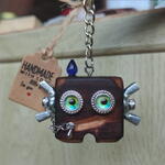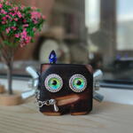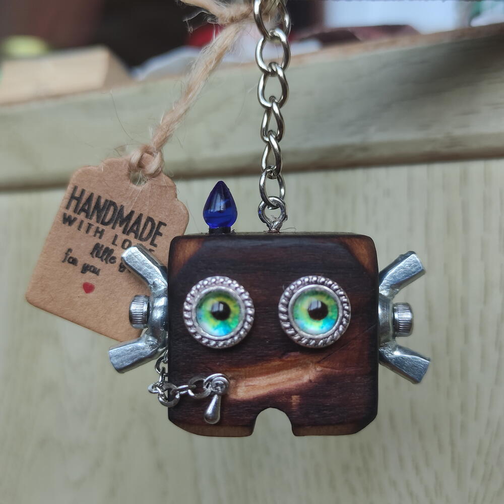 🤖✨ Wooden birch robot keychain — with character and soul. This unusual keychain in the shape of a cute robot is handcrafted from natural birch. The warm wood texture, deep dark tone and expressive bright eyes make it truly alive and memorable. 💚 The bright eyes give the robot personality — it seems to watch the world alongside you. Such an accessory will definitely not go unnoticed! 🎁 The perfect gift for lovers of unusual things, steampunk, handmade work and original accessories. Suitable as a keychain for keys, or as a decoration for a backpack or bag. Add a bit of imagination and character to everyday items! Treated and coated with protective wax to preserve the wood’s beauty and give the surface smoothness and a subtle, refined sheen. 🔹 Material: natural birch 🔹 Decor: metal elements, chain, decorative details 🔹 Size: compact and lightweight — comfortable to carry every day 🔹 Style: steampunk, vintage, handmade