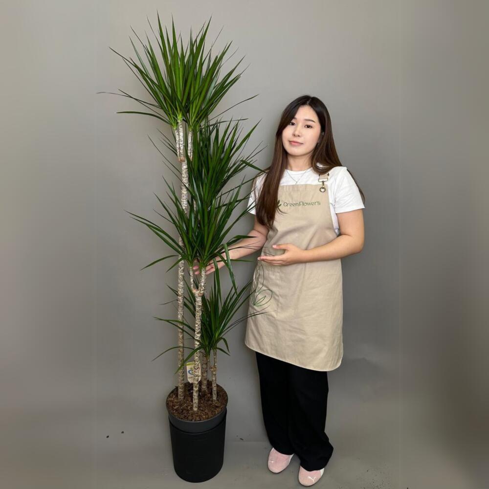 "Эффектное растение с изогнутыми листьями, очищающее воздух. Уход: рассеянный свет, регулярный полив по мере подсыхания земли, опрыскивание."