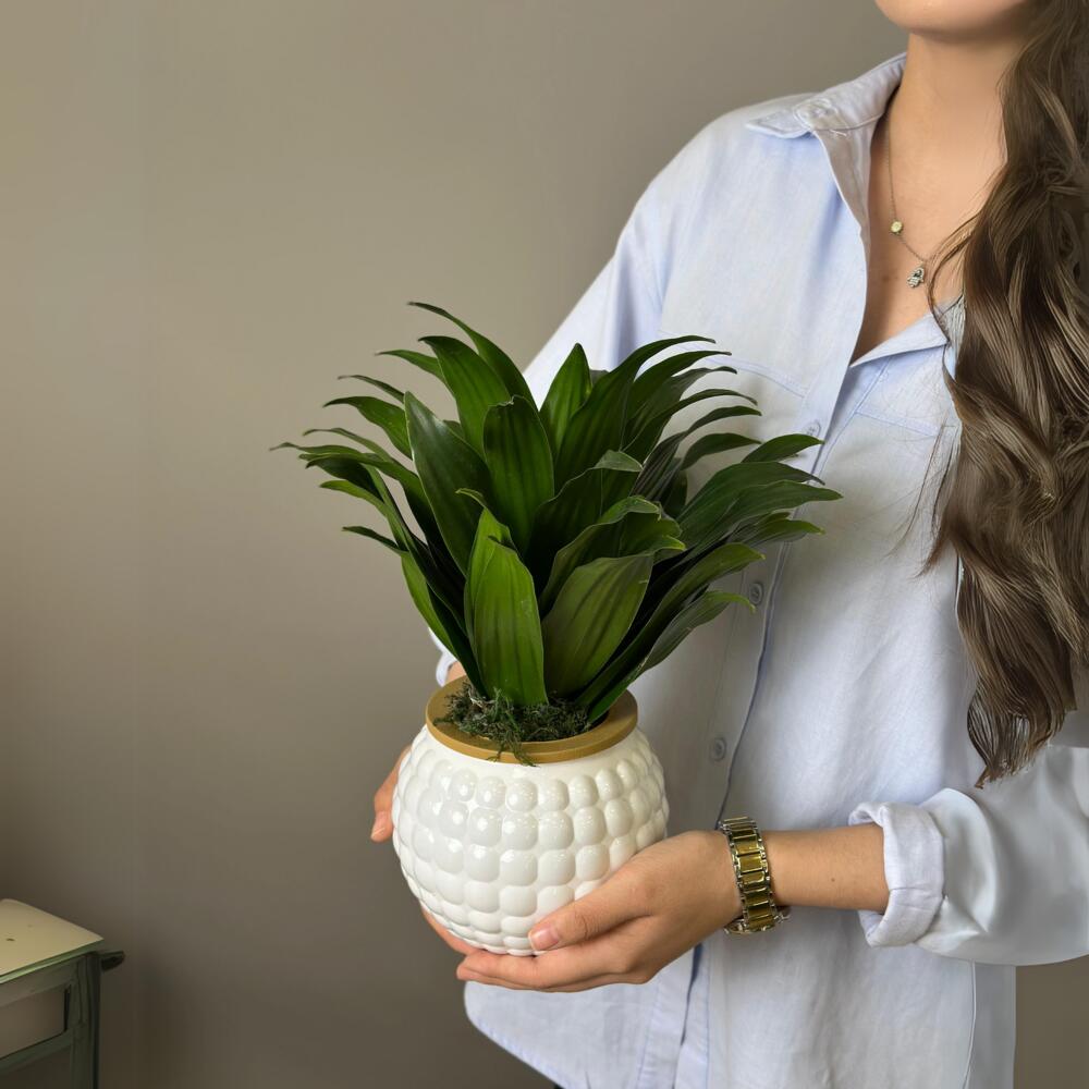 Элегантное тропическое растение с узкими зелёными листьями. Драцена очищает воздух и прекрасно впишется в современный интерьер. Уход: светлое место без прямых солнечных лучей, умеренный полив, опрыскивание.