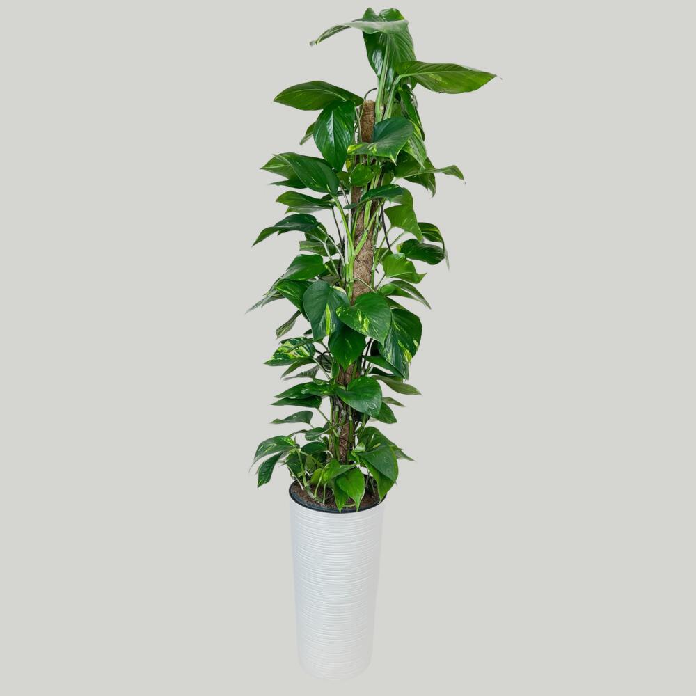 Эпипремнум 150 см — пышное вьющееся растение, идеально подходящее для вертикального озеленения и придания яркости интерьеру. Его блестящие сердцевидные листья с красивыми зелёными оттенками создают эффект живой стены. Эпипремнум неприхотлив, отлично очищает воздух и прекрасно смотрится как в офисе, так и дома. Кашпо в подарок!