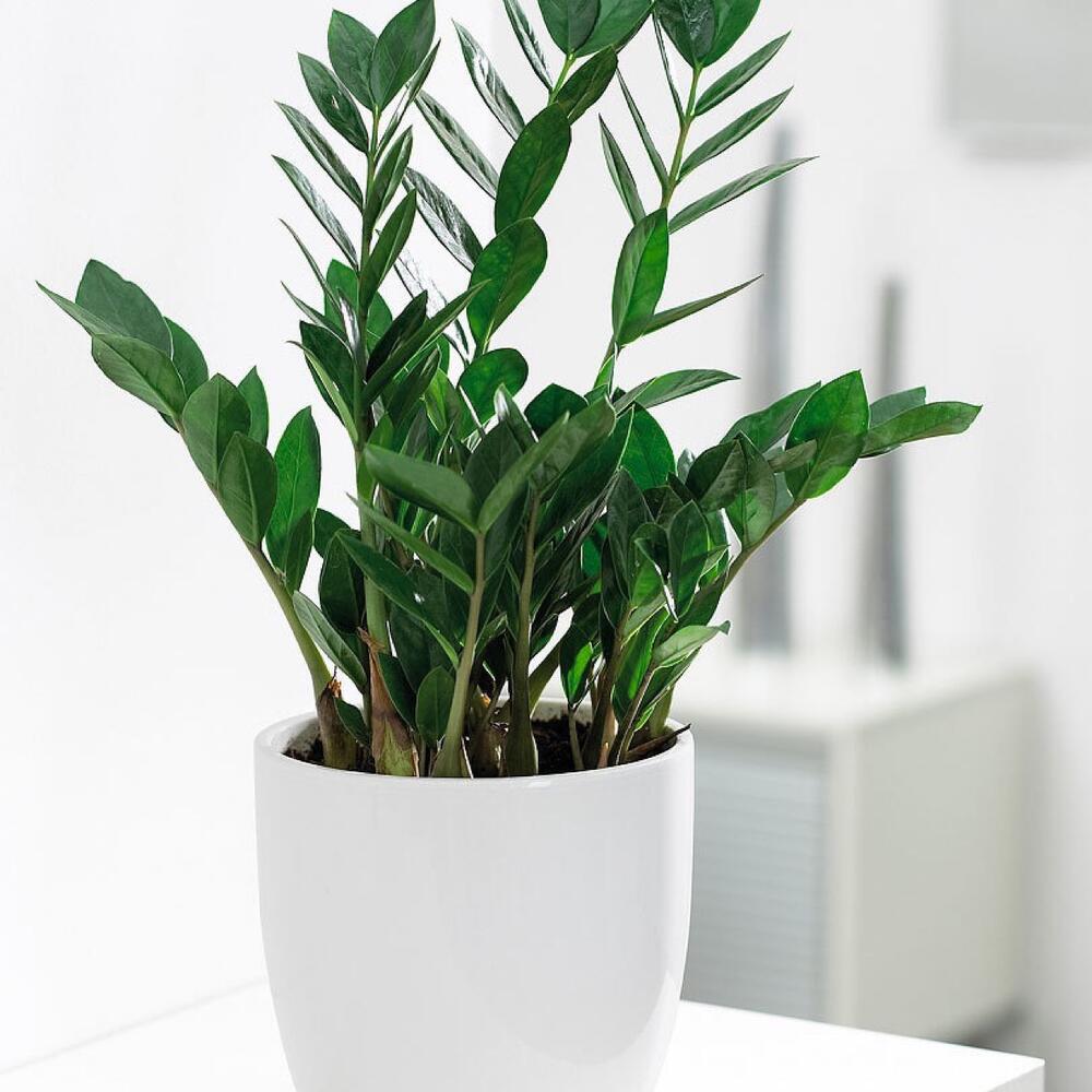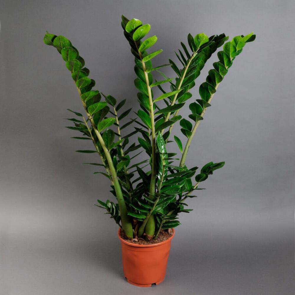 Замиокулькас - многолетнее растение, которое успели полюбить за его неприхотливость и необычный внешний вид. Народное название — «Долларовое дерево». Родина замиокулькаса — пустынные просторы Африки, где оно растёт вместе с другими суккулентами — растениями способными запасать влагу в мясистых стеблях, листьях и корнях, которую эти растения используют в период засухи. Растение прекрасно подойдет для озеленения Вашего дома, офиса или заведения. Вечнозеленый, неприхотливый цветок с легкость оживит любое помещение. Вид горшка может меняться ❤️