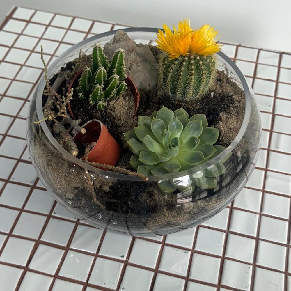 Флорариум с суккулентами микс Суккуленты — это разнообразная группа растений, объединенная способностью накапливать воду в своих мясистых листьях или стеблях, что позволяет им выживать в засушливых условиях. Название происходит от латинского слова sucus, означающего сочный. Они не имеют общего происхождения, но схожи по признакам, вызванным условиями обитания. К ним относятся кактусы, алоэ, литопсы и многие другие виды из различных ботанических семейств.