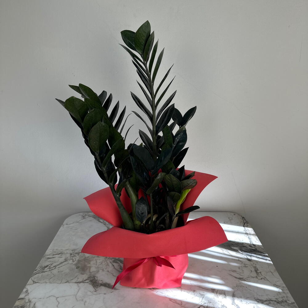 Редкий, черный замиокулькас, второе название долларовое дерево. Упаковка, пакет, открытка в подарок. Отличный подарок для дома.