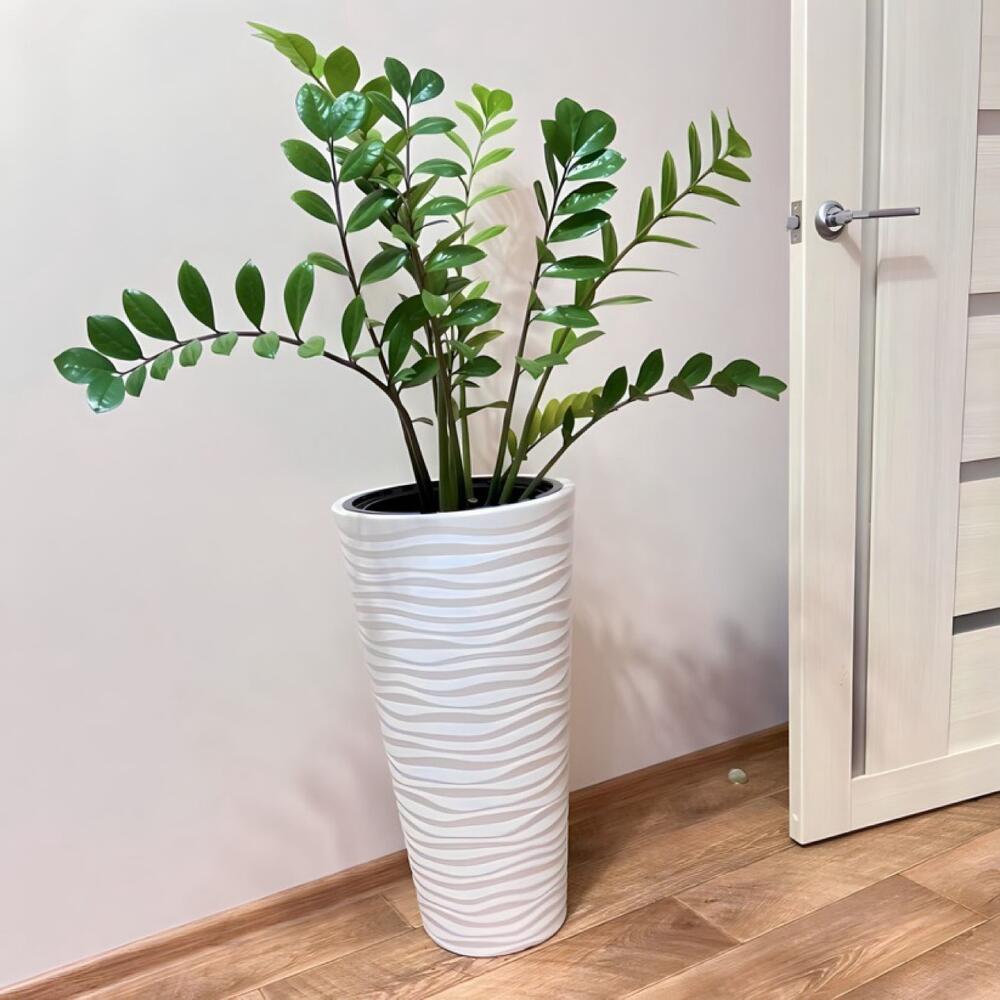 Замиокулькас (иногда его называют долларовым деревом) — неприхотливое растение, переносит пониженную влажность воздуха и частичное затемнение.