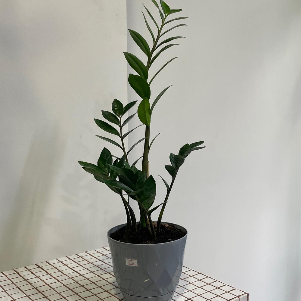 Замиокулькас — неприхотливое вечнозеленое комнатное растение с глянцевыми, темно-зелеными, сложноперистыми листьями и толстым клубнеобразным корневищем, накапливающим влагу. Известен как долларовое дерево или цветок безбрачия, приспособлен к засухе и недостатку света, но требует теплого содержания. Соцветия — невзрачные початки, которые часто удаляют для сохранения сил растения