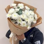 Белоснежный букет из 7 веток хризантем в минималистичном, брендированном оформлении