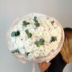 Лаконичный, стильный и наполненный светом — букет «Свежесть» создан из 15 кустовых белых хризантем, дополненных ароматным эвкалиптом. Белоснежные лепестки символизируют чистоту и искренность, а зелёные веточки придают композиции свежесть и природную лёгкость. Этот букет универсален: он подойдёт и для поздравления, и как знак внимания, и просто чтобы порадовать любимого человека.