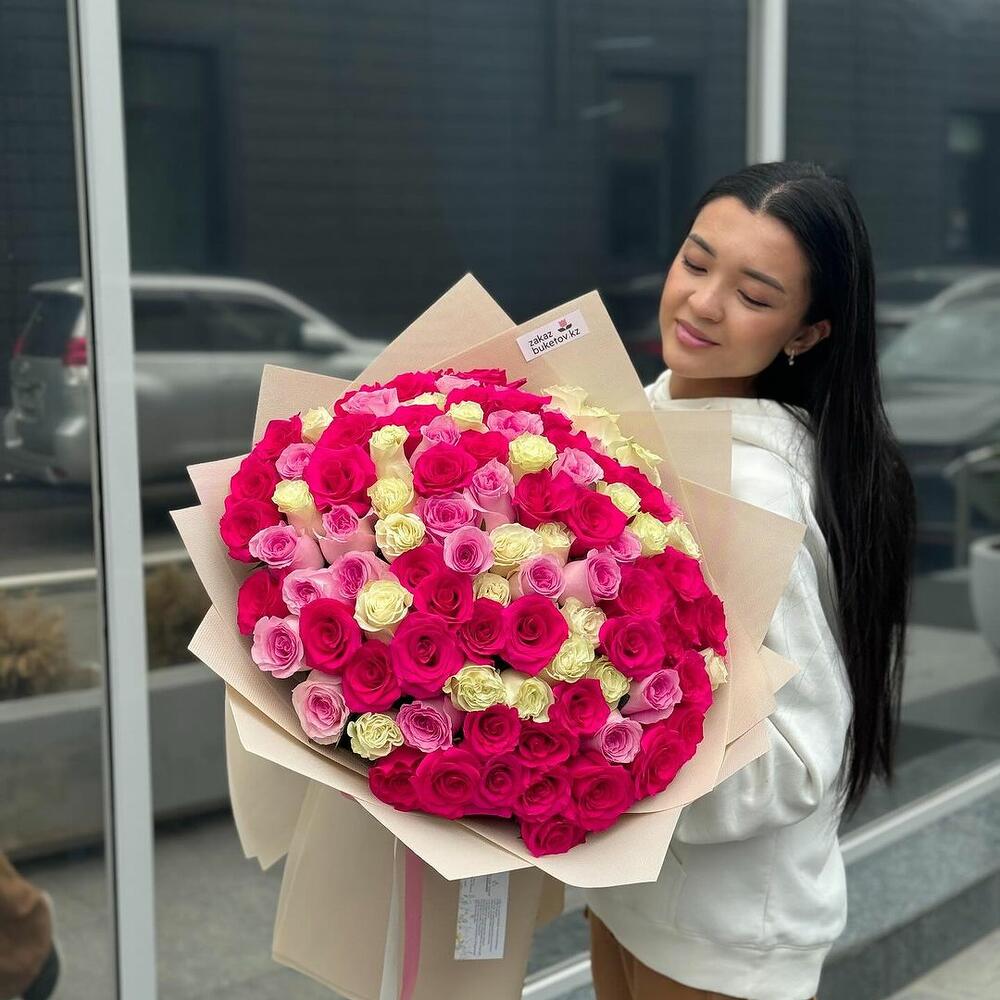 Красивый, пышный букет. Видно что свежий. Но, я просила положить пустую открытку чтобы самой подписать - но не положили. А так, все ок