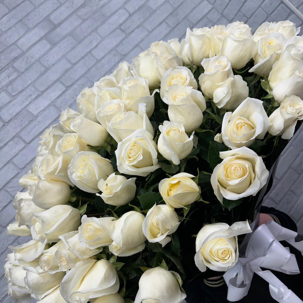 Упаковка - 10 шт. Бант - 1 шт. розы white chocolate - 101 шт.