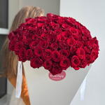 Роза красная - 101 шт. Бант - 1 шт. переноска для цветов - 1 шт.