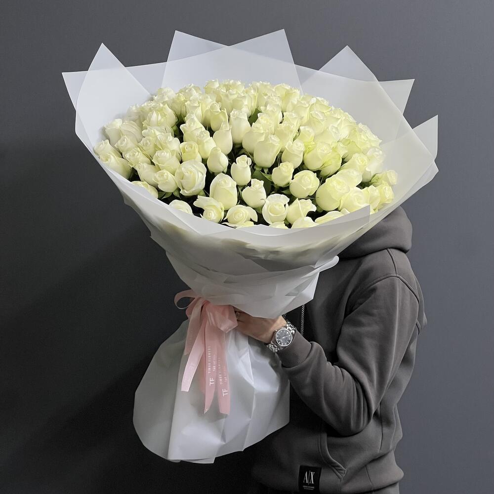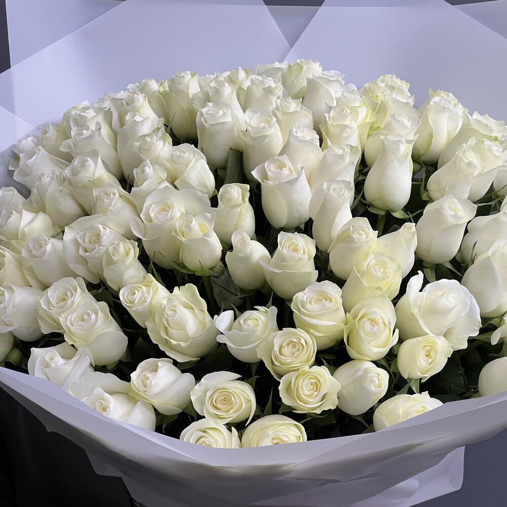 Роза - 101 шт. Лента атласная - 3 шт. матовые салфетки - 9 шт.