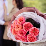 Лента - 1 шт. Оформление - 1 шт. пионовидных роза pink expression - 11 шт.