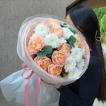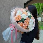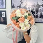 Хризантема кустовая - 2 шт. Эвкалипт - 1 шт. спрей роза juliet - 3 шт.