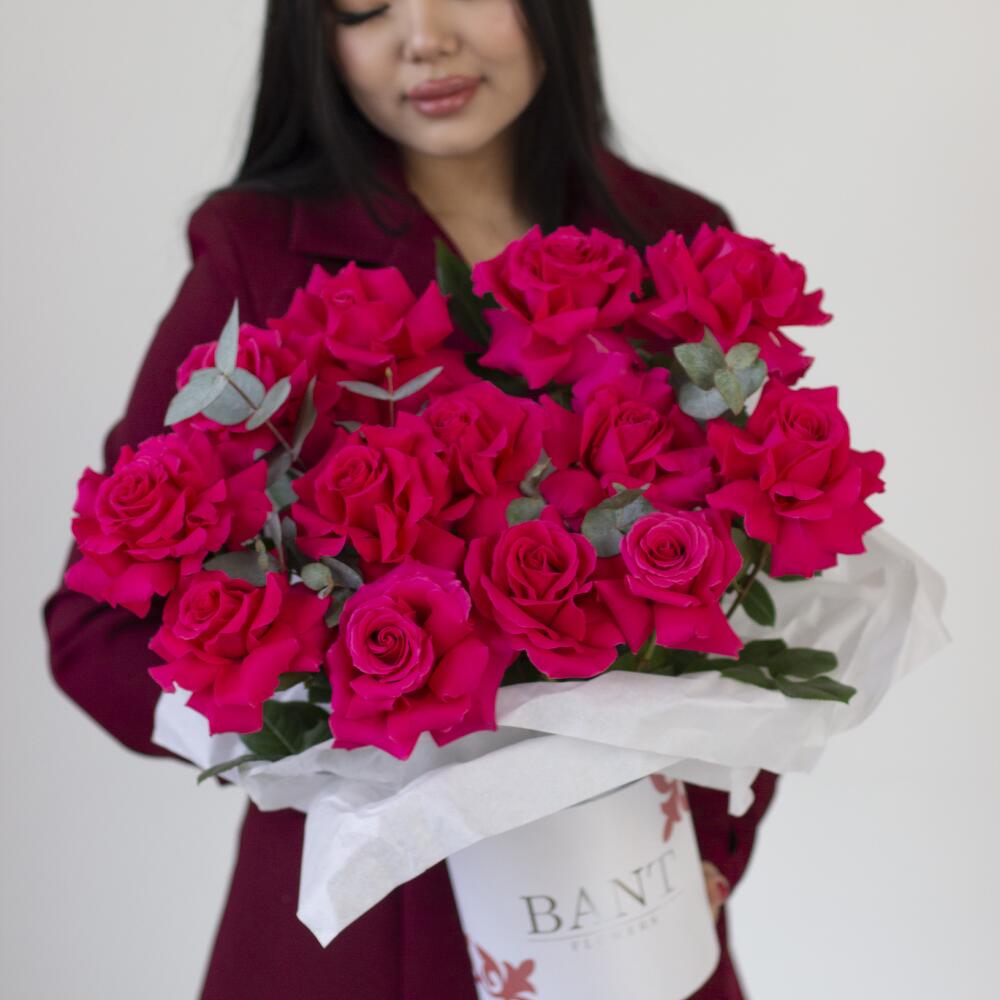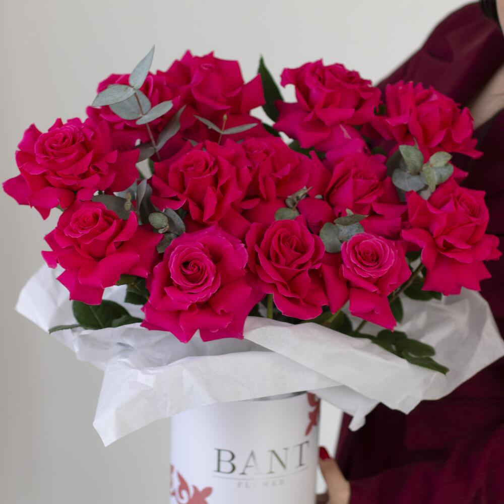 Роза - 13 шт. Коробка шляпная - 1 шт. Оазис - 1 шт.