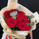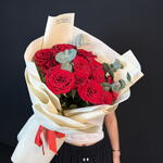 Эвкалипт - 4 шт. красные розы - 13 шт.