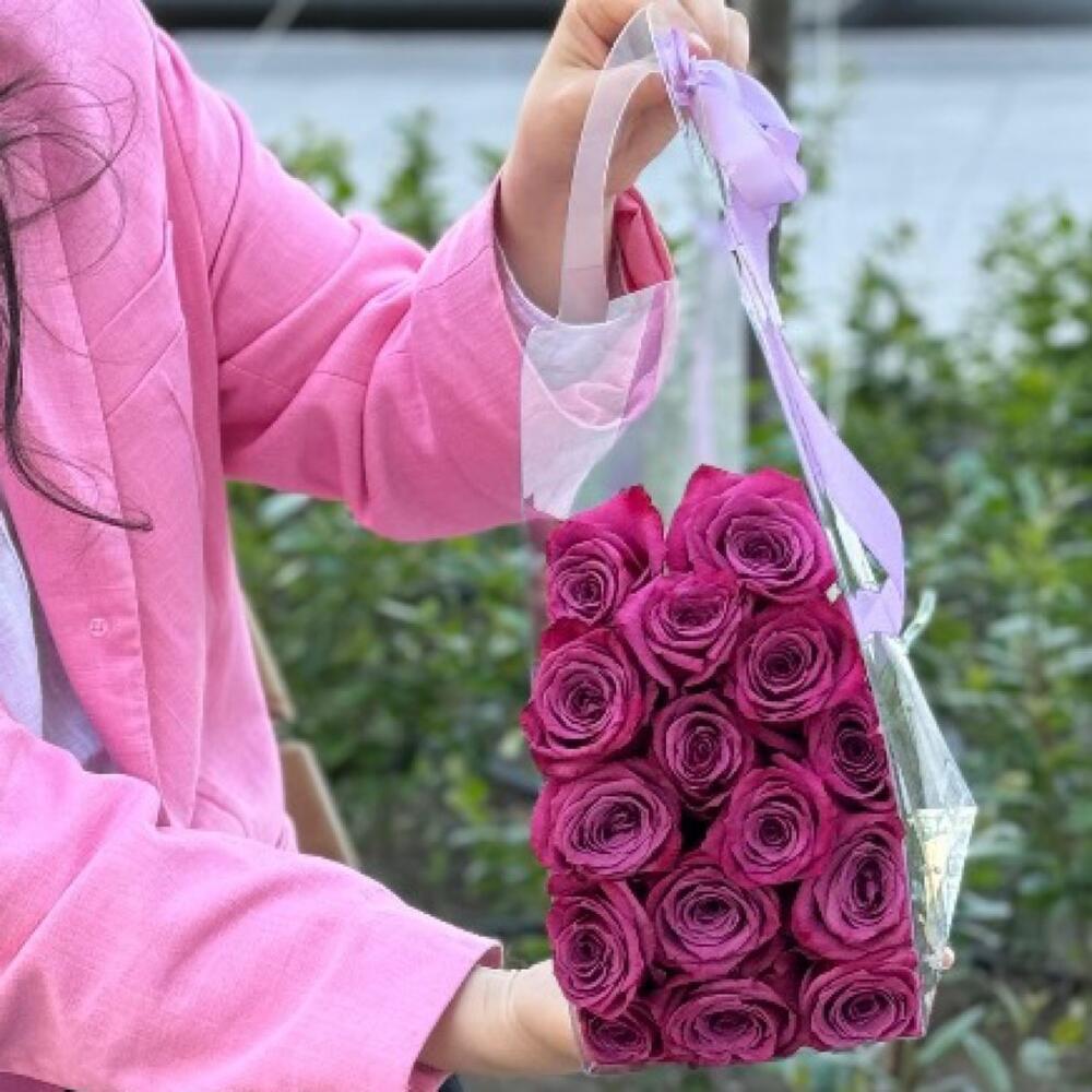 Роза Голландская - 15 шт. Сумочка - 1 шт.