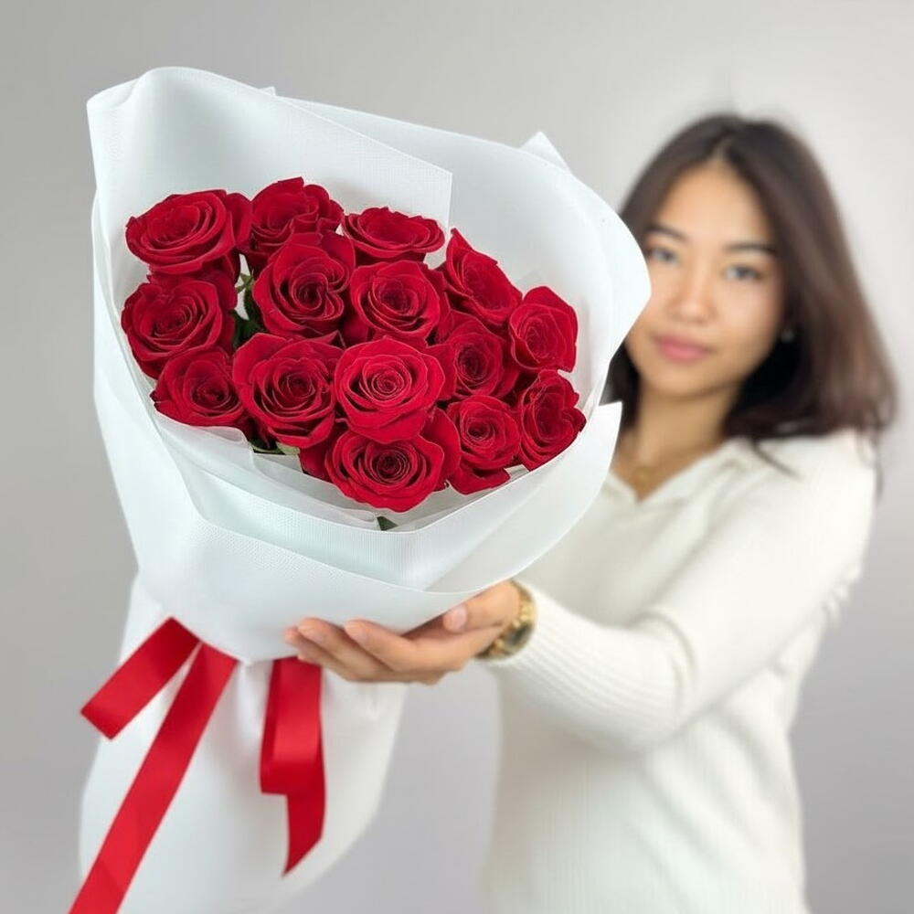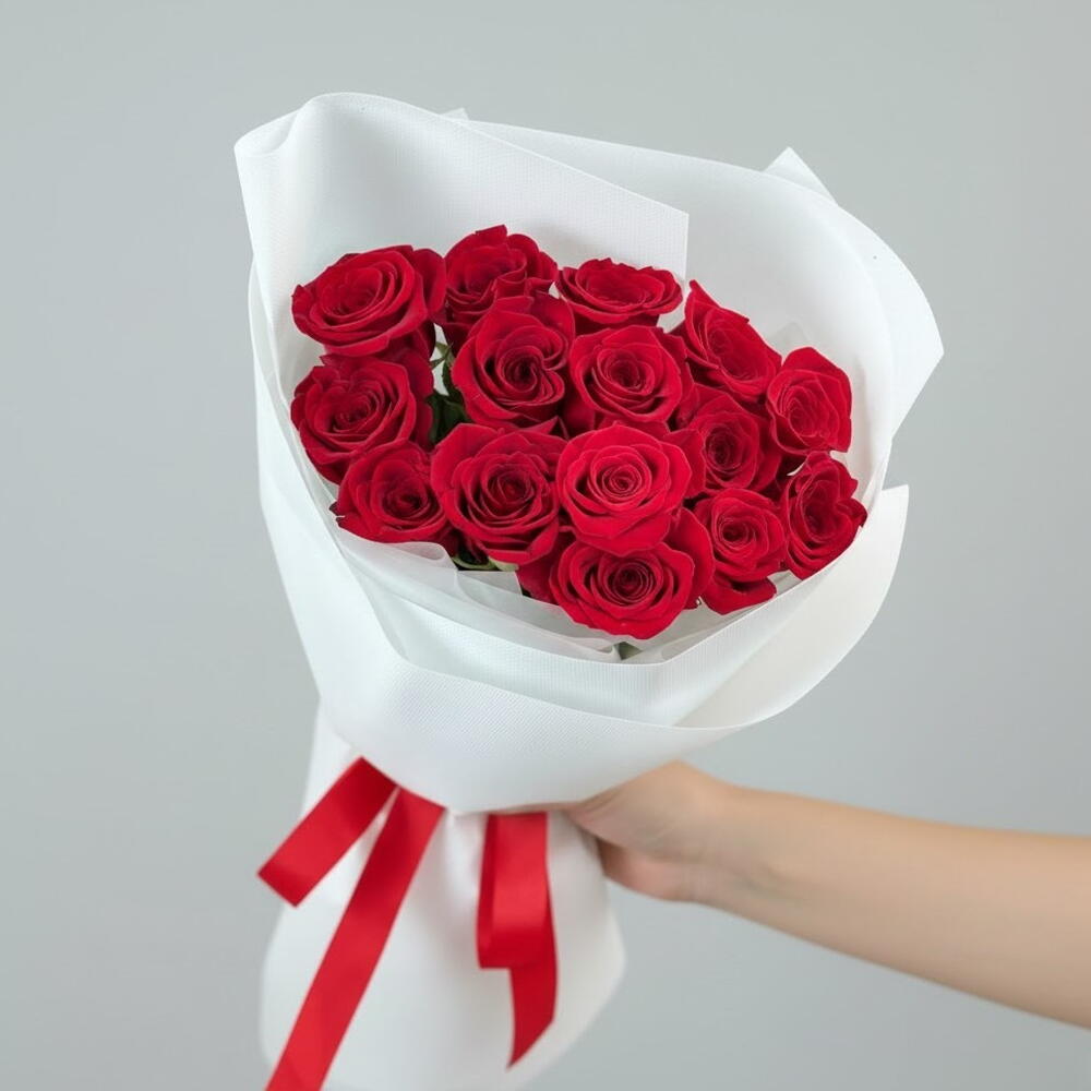 Яркий и выразительный букет из красных роз — классика, которая всегда говорит о чувствах без лишних слов. Бархатные лепестки создают насыщенный цветовой акцент и притягивают взгляд с первого мгновения. Композиция собрана плотно и аккуратно, благодаря чему букет выглядит объёмным и гармоничным. Белая упаковка добавляет образу чистоты и подчёркивает благородство роз. Такой букет станет идеальным подарком для признания в любви, годовщины или важного события. Он уместен как для торжественного момента, так и для спонтанного романтического жеста. Рекомендации по уходу: подрежьте стебли под углом, поставьте цветы в чистую вазу с прохладной водой, меняйте воду ежедневно и избегайте сквозняков и прямых солнечных лучей.