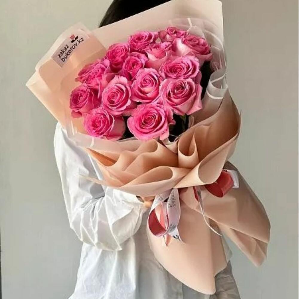 Красивый, пышный букет. Видно что свежий. Но, я просила положить пустую открытку чтобы самой подписать - но не положили. А так, все ок