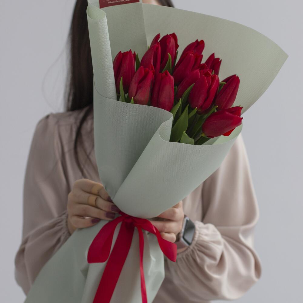 15 красных тюльпанов