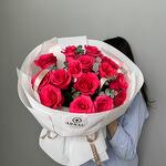 Эвкалипт - 3 шт. Роза - 15 шт. Упаковка дизайнерская - 1 шт.