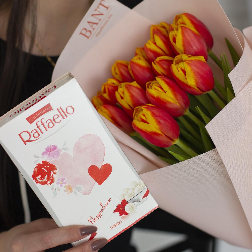 Тюльпан - 15 шт. Raffaello - 1 шт.