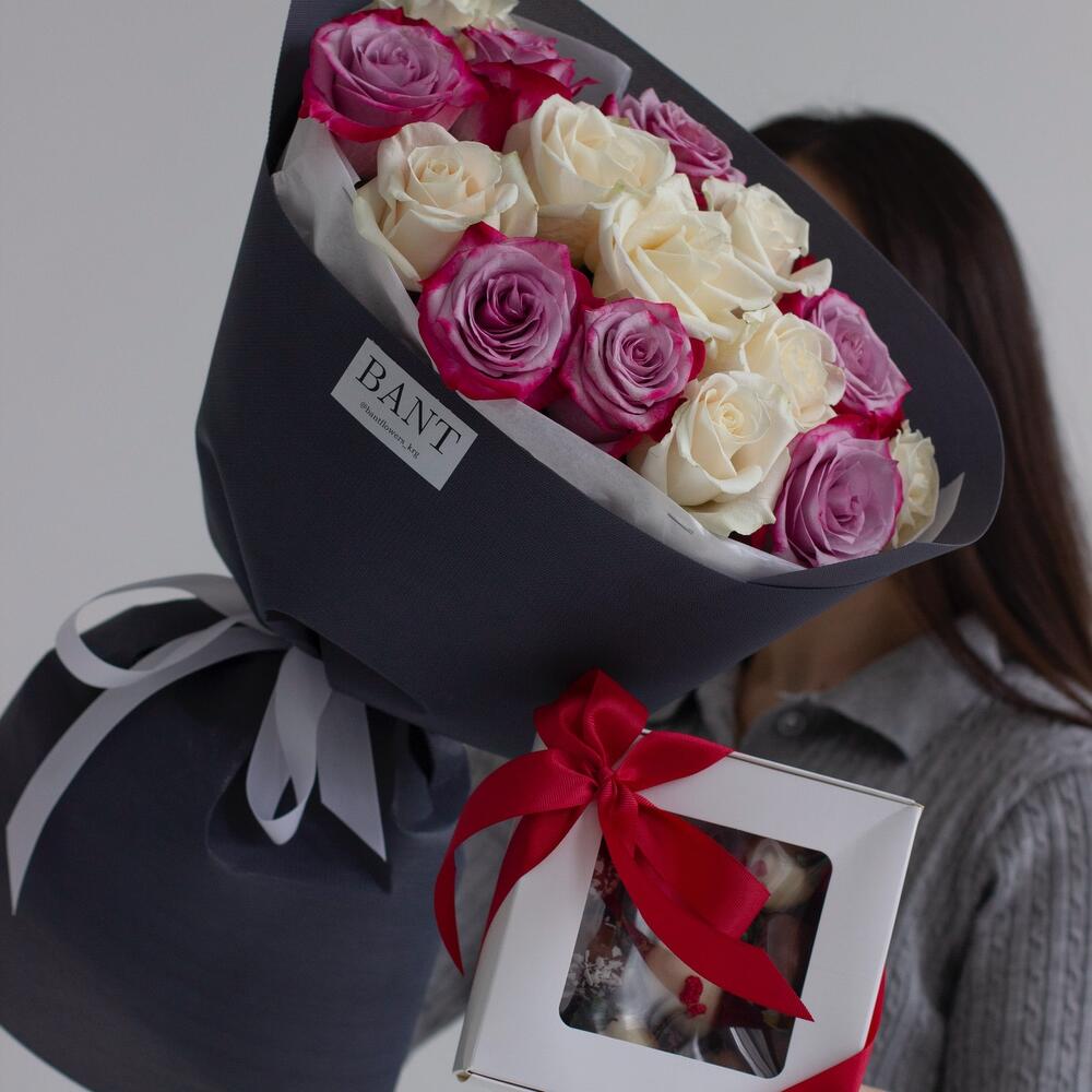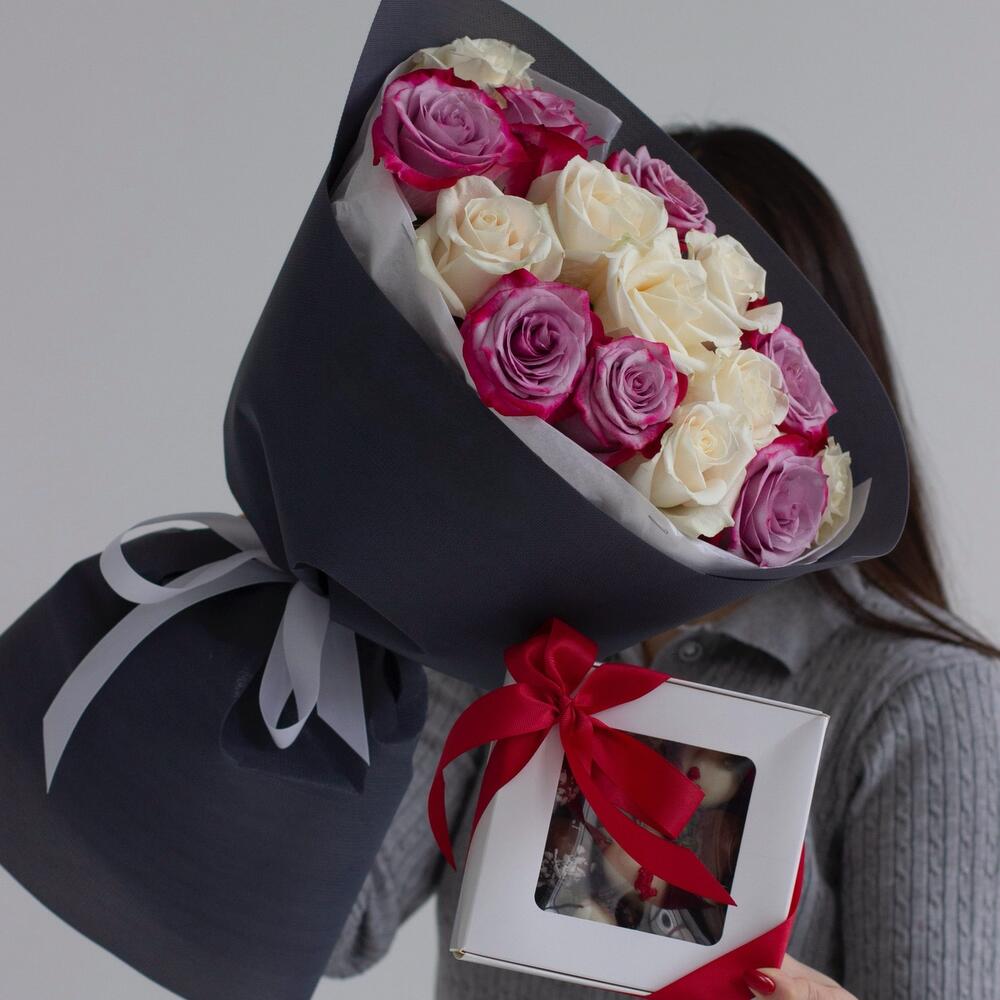 Роза - 15 шт. Клубника в шоколаде - 9 шт.