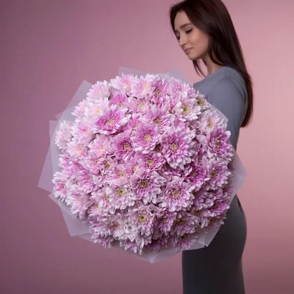 Лента - 1 шт. Оформление - 1 шт. хризантема зембла розовая - 15 шт.
