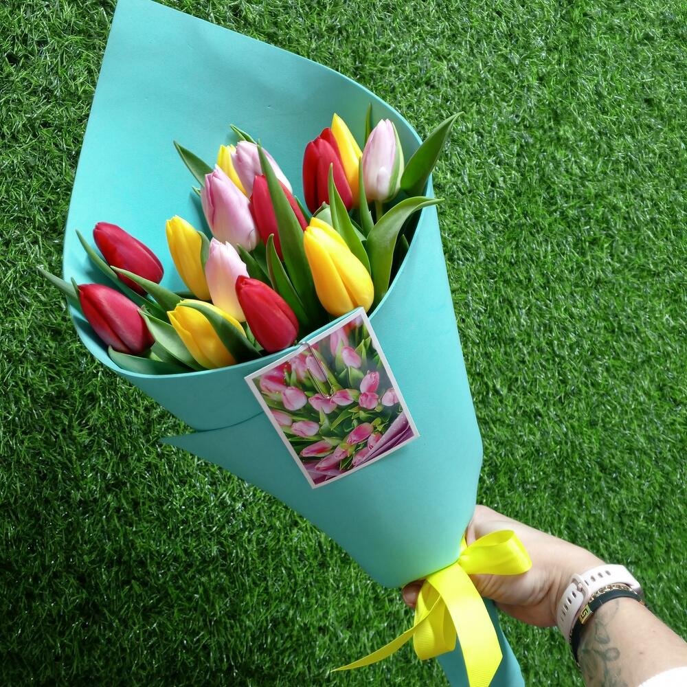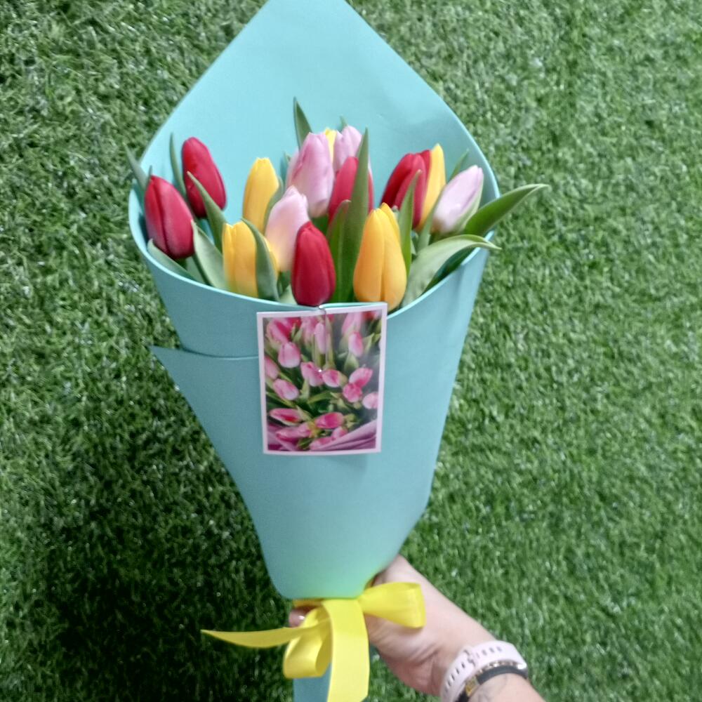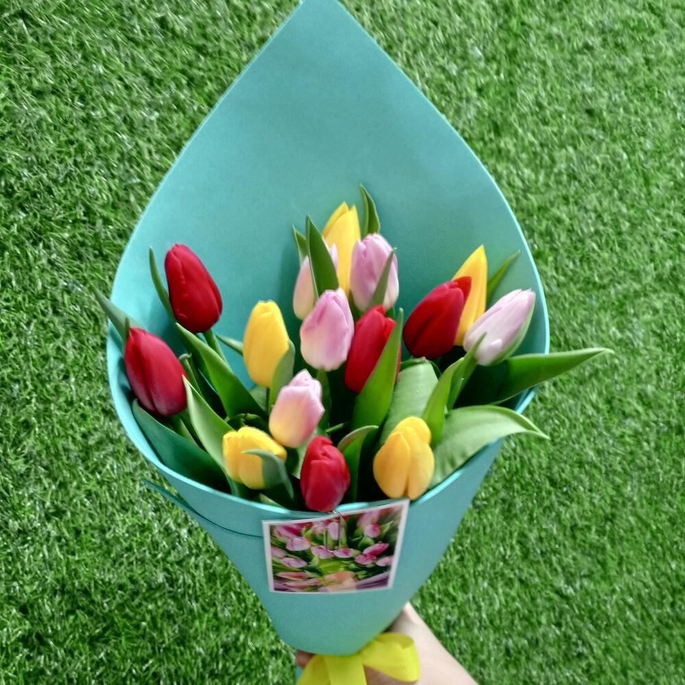 Моно букет из 15 тюльпанов в мягком фоамиране