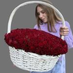 Роскошная композиция из красных роз в элегантной плетёной корзине. Идеальный выбор для выражения пылких чувств, признания в любви или эффектного поздравления.