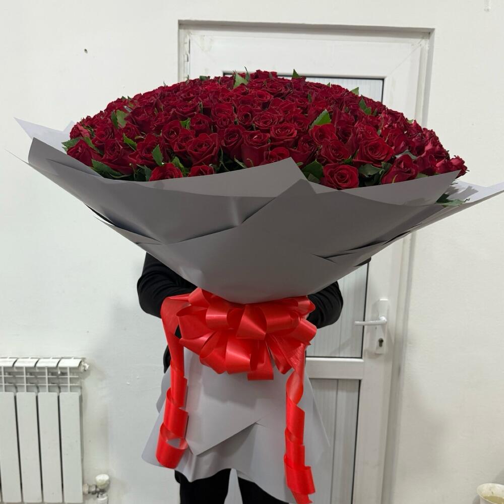 Огромный объемный букет из роз.Порадует всех на всегда.Ароматные розы в шикарном оформлении