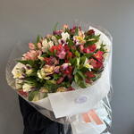 Этот изысканный монобукет искрится на солнце, будто красочный огненный фейерверк, вспыхивающий нежными оттенками альстромерии. В составе - 25 штук великолепия, создающих образ страсти и нежности одновременно. Упакованы цветы по 5 штук, обеспечивая их безопасность и сохранность каждой лепестковой красоты. Подарок, достойный самых важных людей в вашей жизни.