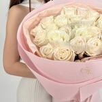 25 белых роз — это история о чистоте чувств и искренней заботе. Нежные бутоны, собранные в воздушное оформление, словно шёпотом говорят о любви, уважении и светлых эмоциях. Такой букет наполняет пространство спокойствием и утончённой красотой, оставляя после себя ощущение тепла и гармонии 🤍