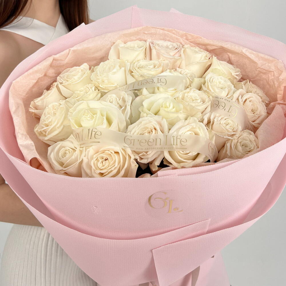 25 белых роз — это история о чистоте чувств и искренней заботе. Нежные бутоны, собранные в воздушное оформление, словно шёпотом говорят о любви, уважении и светлых эмоциях. Такой букет наполняет пространство спокойствием и утончённой красотой, оставляя после себя ощущение тепла и гармонии 🤍