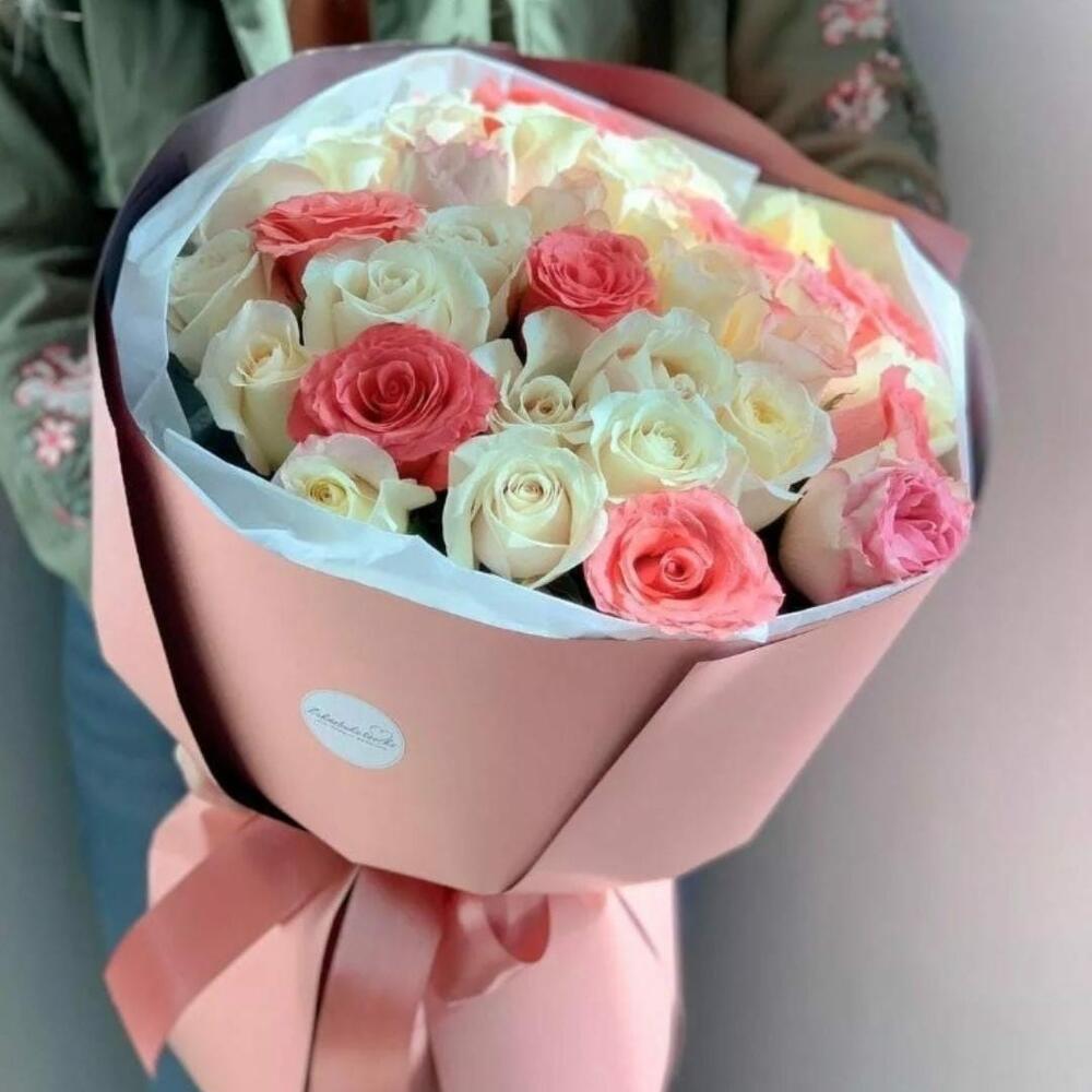Красивый, пышный букет. Видно что свежий. Но, я просила положить пустую открытку чтобы самой подписать - но не положили. А так, все ок