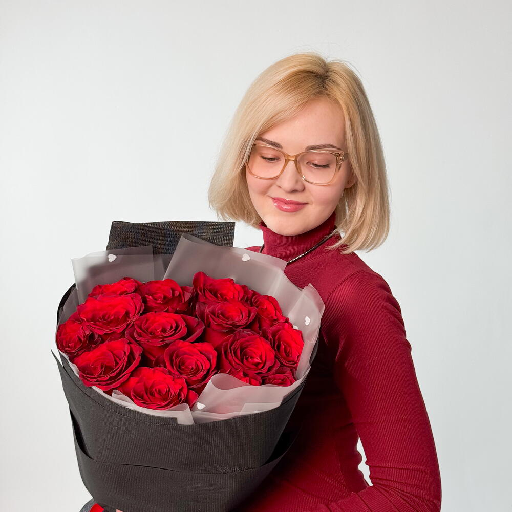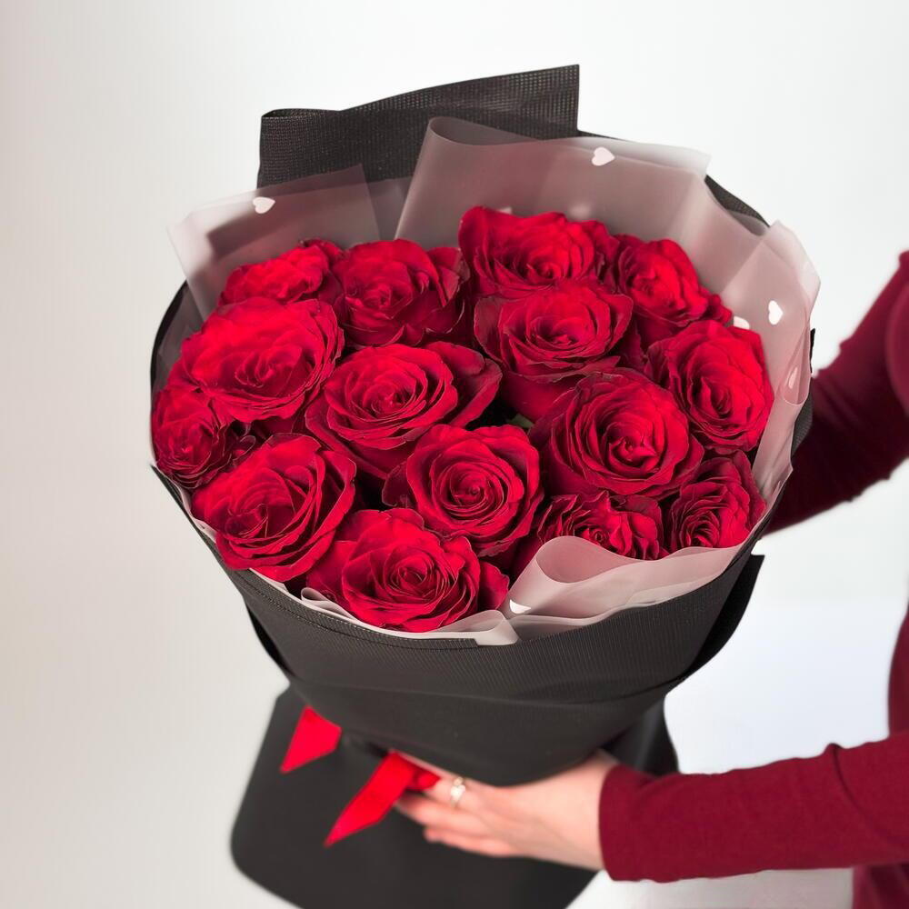 Элегантный букет из алых роз в стильной тёмной упаковке — воплощение классики и страсти. Бархатистые бутоны насыщенного красного цвета выглядят благородно и выразительно, притягивая внимание с первого взгляда. Такой букет идеально подойдёт для признания в любви, романтического свидания, годовщины или особого торжества. Букет собран плотно и аккуратно, создавая ощущение роскоши. Он станет ярким акцентом и запоминающимся подарком для дорогого человека. Рекомендации по уходу: перед тем как поставить букет в вазу, подрежьте стебли под углом, используйте чистую прохладную воду, меняйте её ежедневно и держите цветы вдали от прямого солнца, батарей и сквозняков.