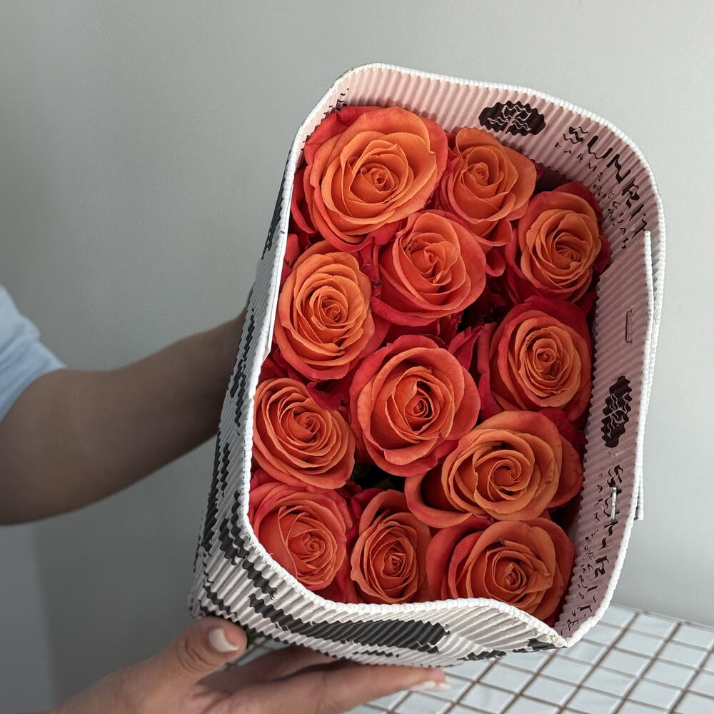 25 оранжевых роз в пачке