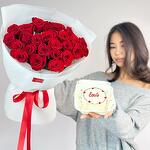 розы - 25 шт. сахарная пудра - 1 шт. бенто торт - 1 шт. творожный крем - 1 шт.